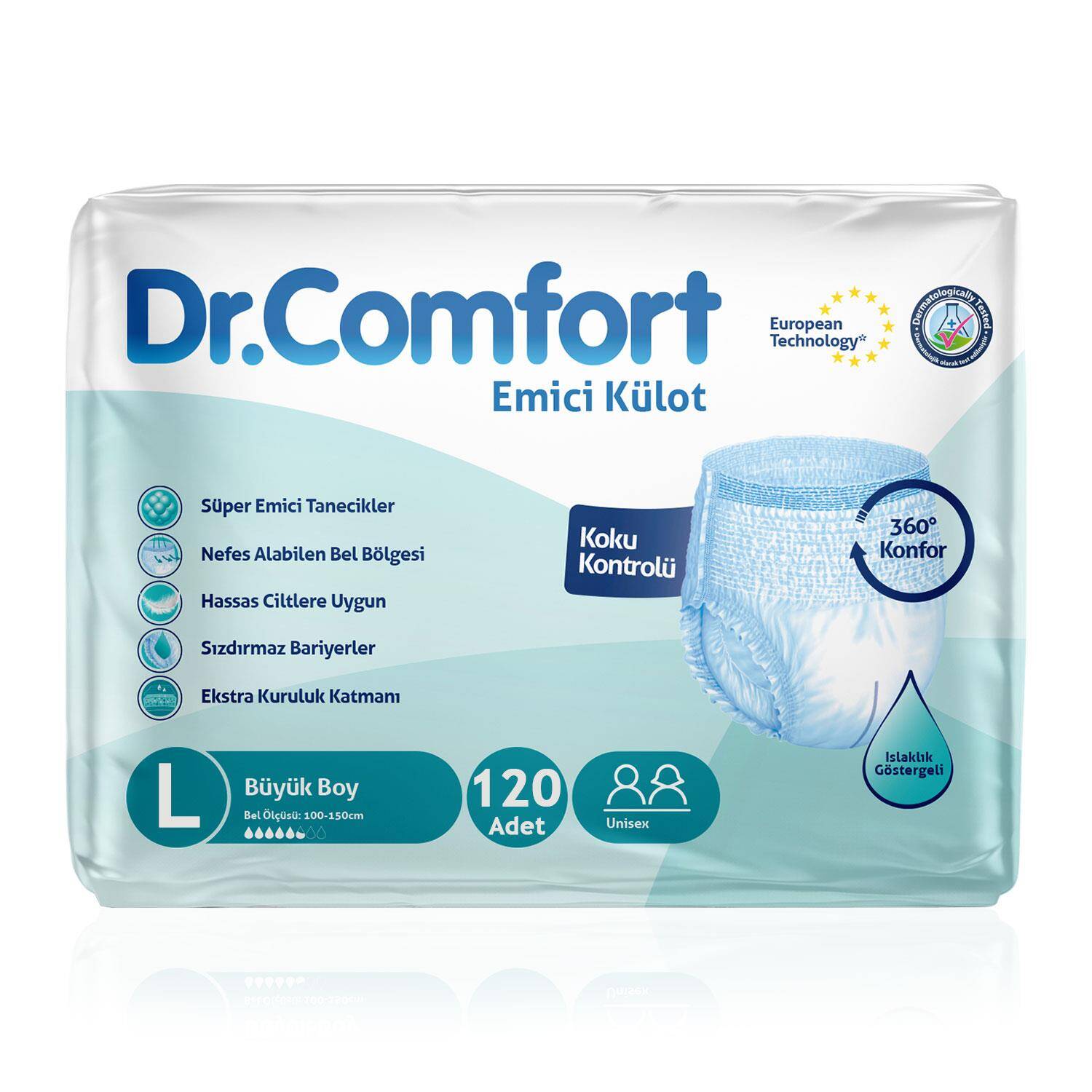 Dr. Comfort emici külot, istemsiz idrar kaçırma durumlarında bile sızdırmaz koruma sağlar. Özel tasarımı sayesinde günlük aktivitelerinizde güvenle hareket edebilirsiniz. Nefes alabilen elastik bel bölgesi ve yumuşak kumaşı sayesinde iç çamaşırı gibi konforlu kullanım sunar. Esnek yapısı hareket özgürlüğü sağlar, gün boyu rahatlık hissi verir.