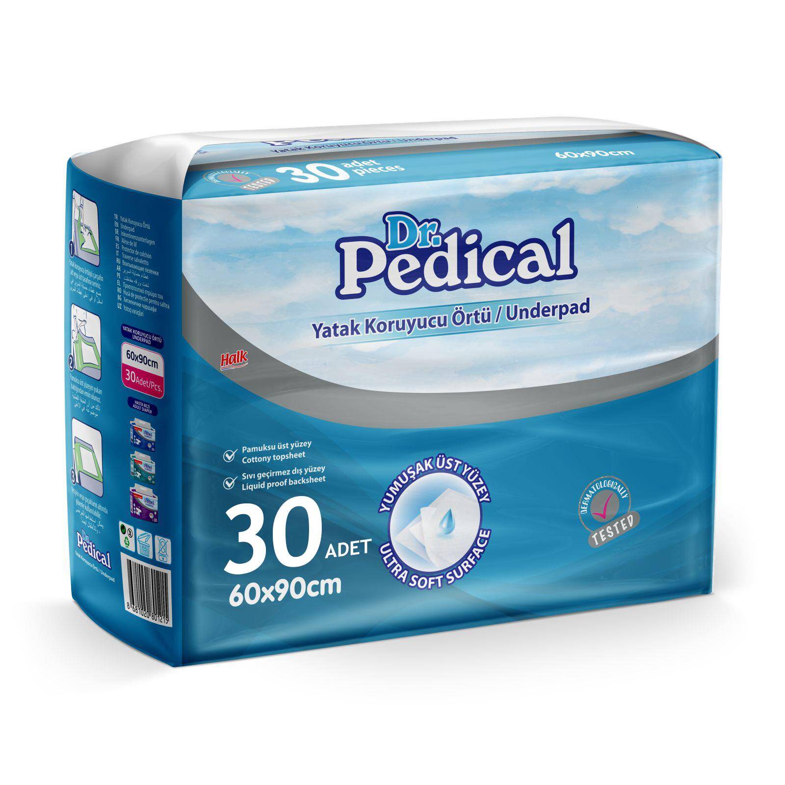 Dr. Pedical Yatak Koruyucu Örtü, hasta ve yaşlı bakımında konfor ve hijyen sunan 60×90 cm boyutlarında, 30 adet ekonomik paket seçeneği ile kullanıcıların ihtiyaçlarını karşılar. Emici üst katmanı ve sıvı geçirmez alt tabakası sayesinde yatakları ve hasta altlarını sızıntılara karşı korur, kuru ve temiz bir kullanım sağlar.