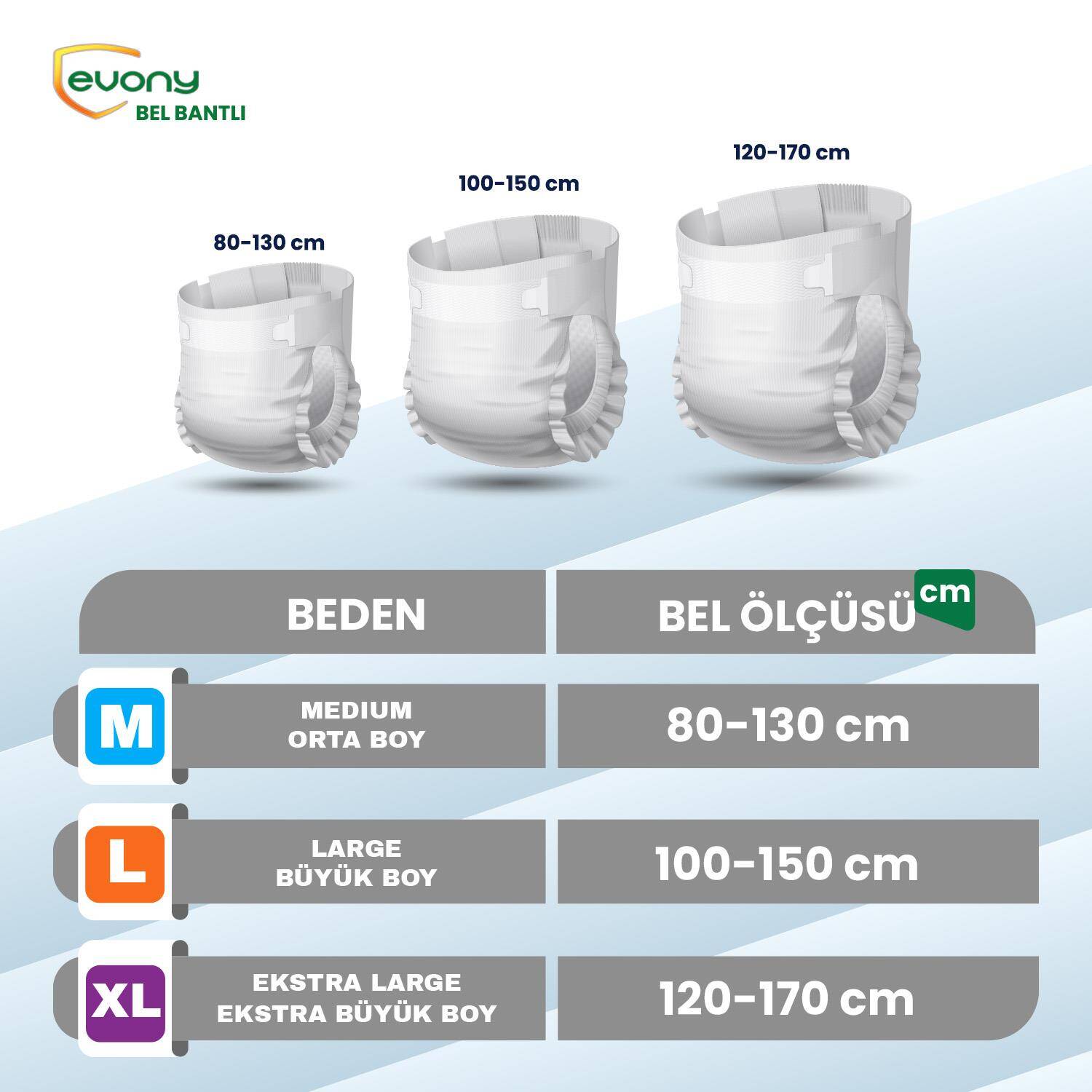 Evony Premium Esnek Belbantlı Hasta Bezi L-Large Beden (100-150 cm) - 60 Adet