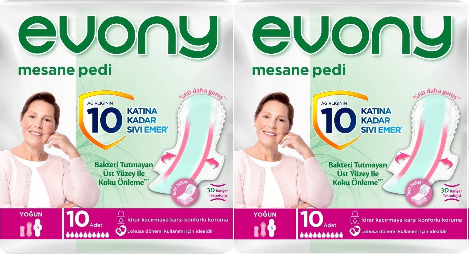 Evony Yoğun Mesane Pedleri, günlük yaşamda beklenmedik idrar kaçırma durumlarına karşı güvenli koruma ve konfor sağlar. İçerdiği süper emici tanecikleri sayesinde kendi ağırlığının 10 katına kadar sıvıyı emer. Bakteri tutmayan üst yüzeyi hijyenik bir kullanım sunarken, koku önleyici özelliği ile gün boyu ferah bir his sağlar. Ayrıca dermatolojik olarak test edilmiştir ve cilt dostudur.
