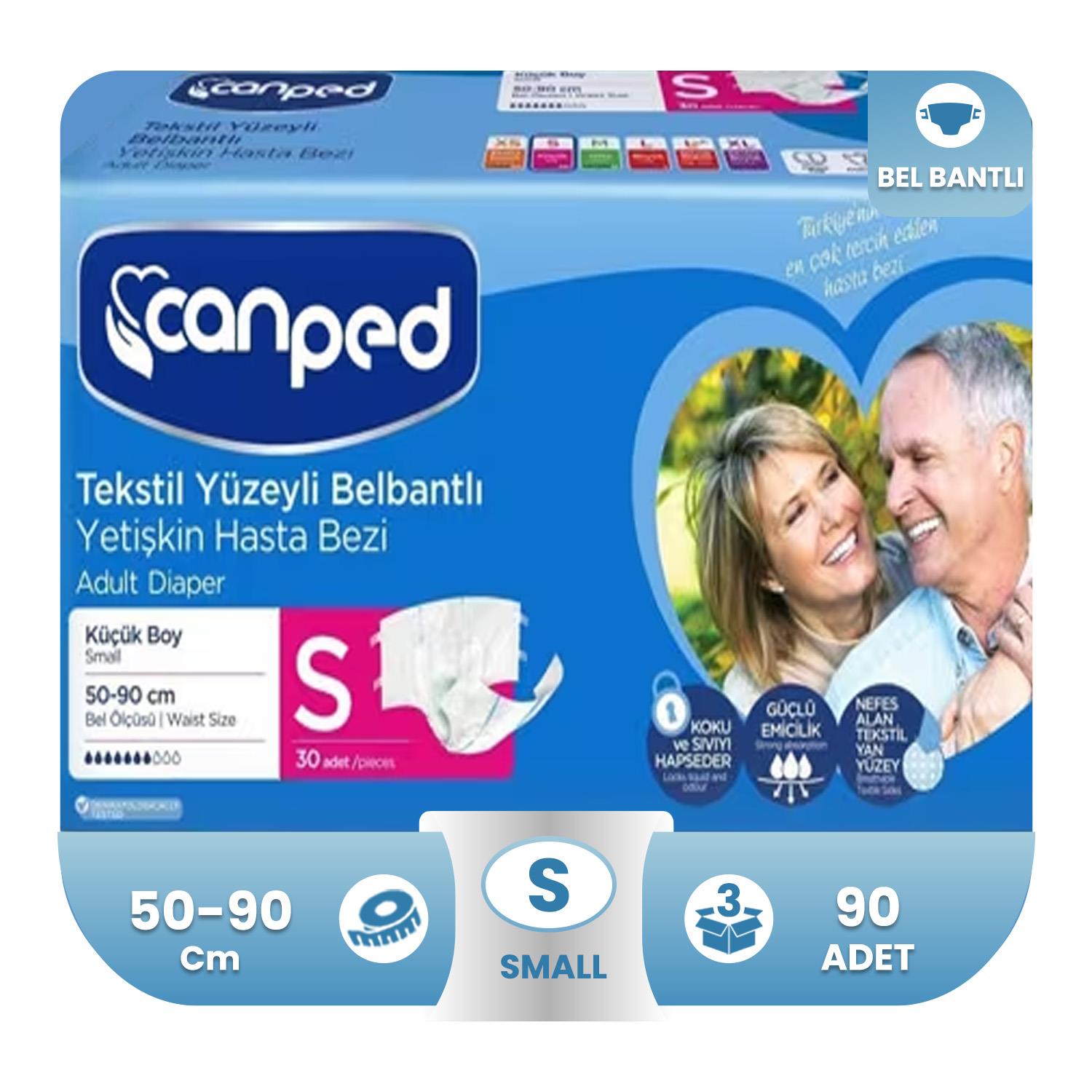 Canped Belbantlı Tekstil Yüzey Hasta Bezi S-Small Beden 90 Adet