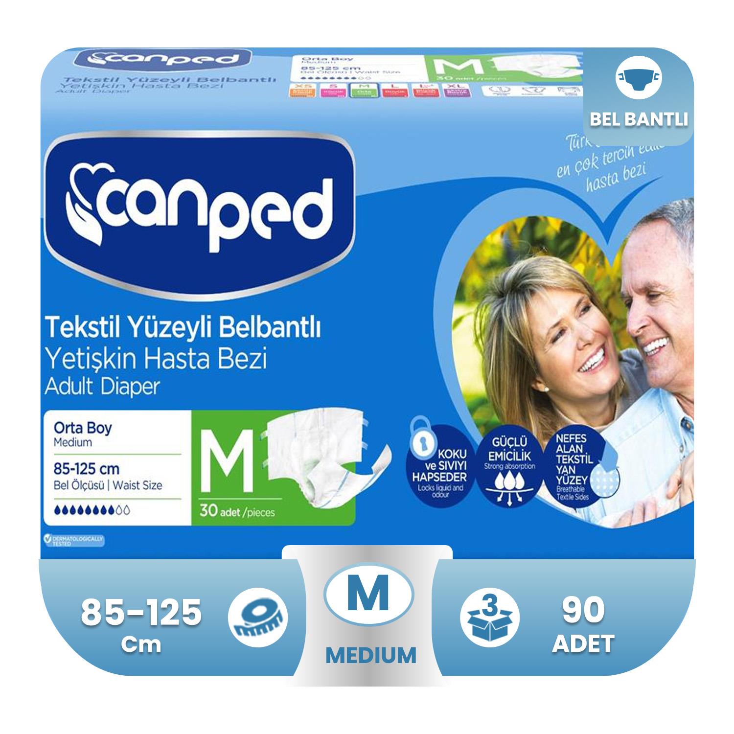 Canped Belbantlı Tekstil Yüzey Hasta Bezi M-Medium Beden 90 Adet