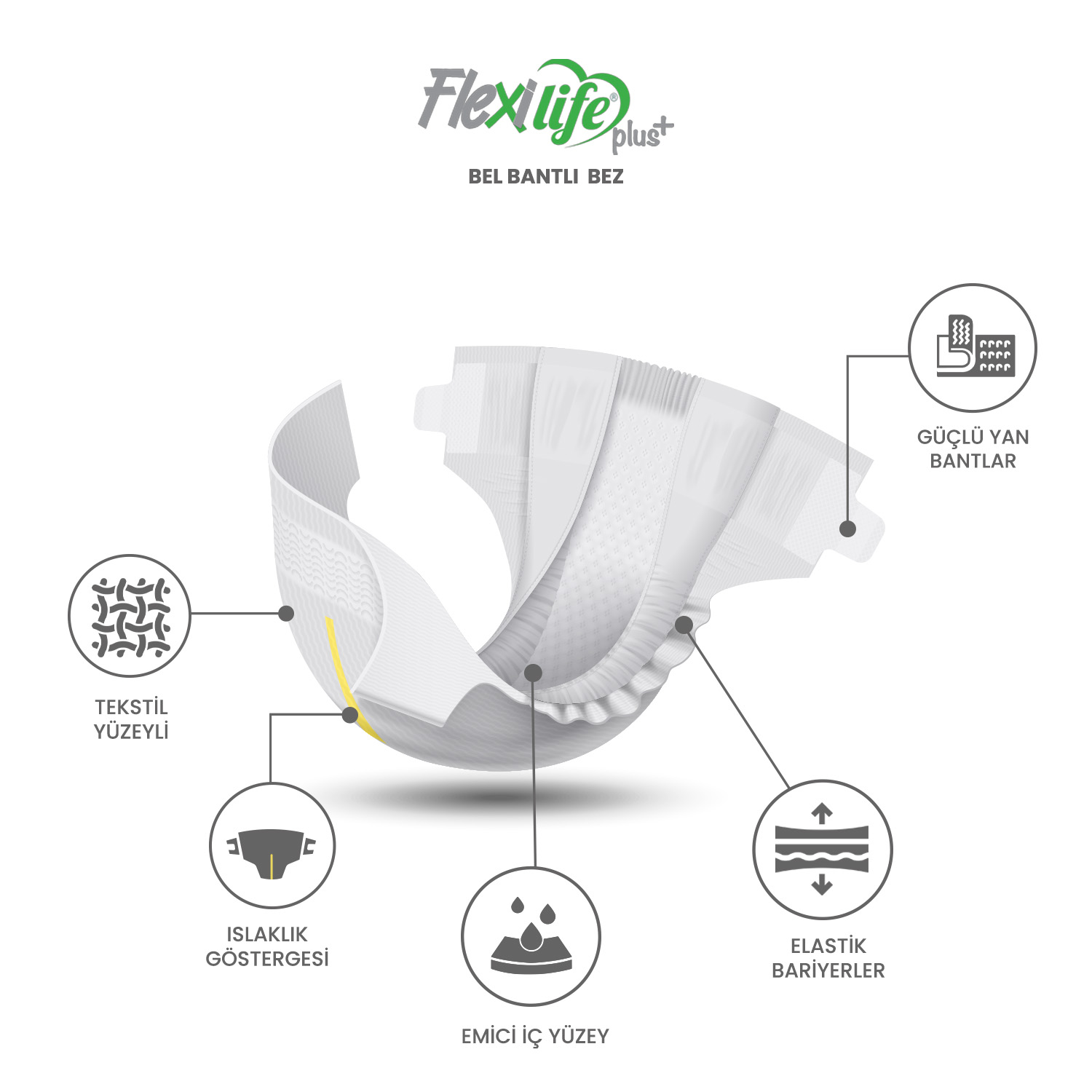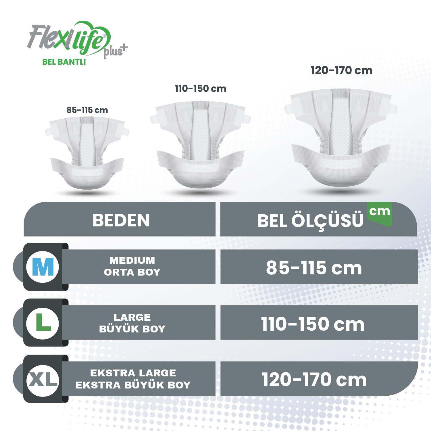 Flexi Life Bel Bantlı Hasta Bezi Medium – 90 Adet | 85-115 cm Bel Ölçüsü