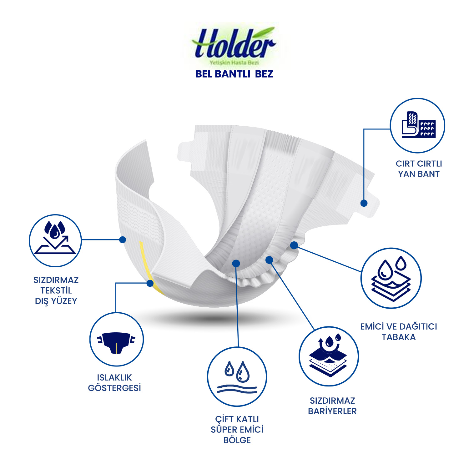 Holder Belbantlı Hasta Bezi X-Large Beden | 120-160 cm Bel Ölçüsü | 120 Adet