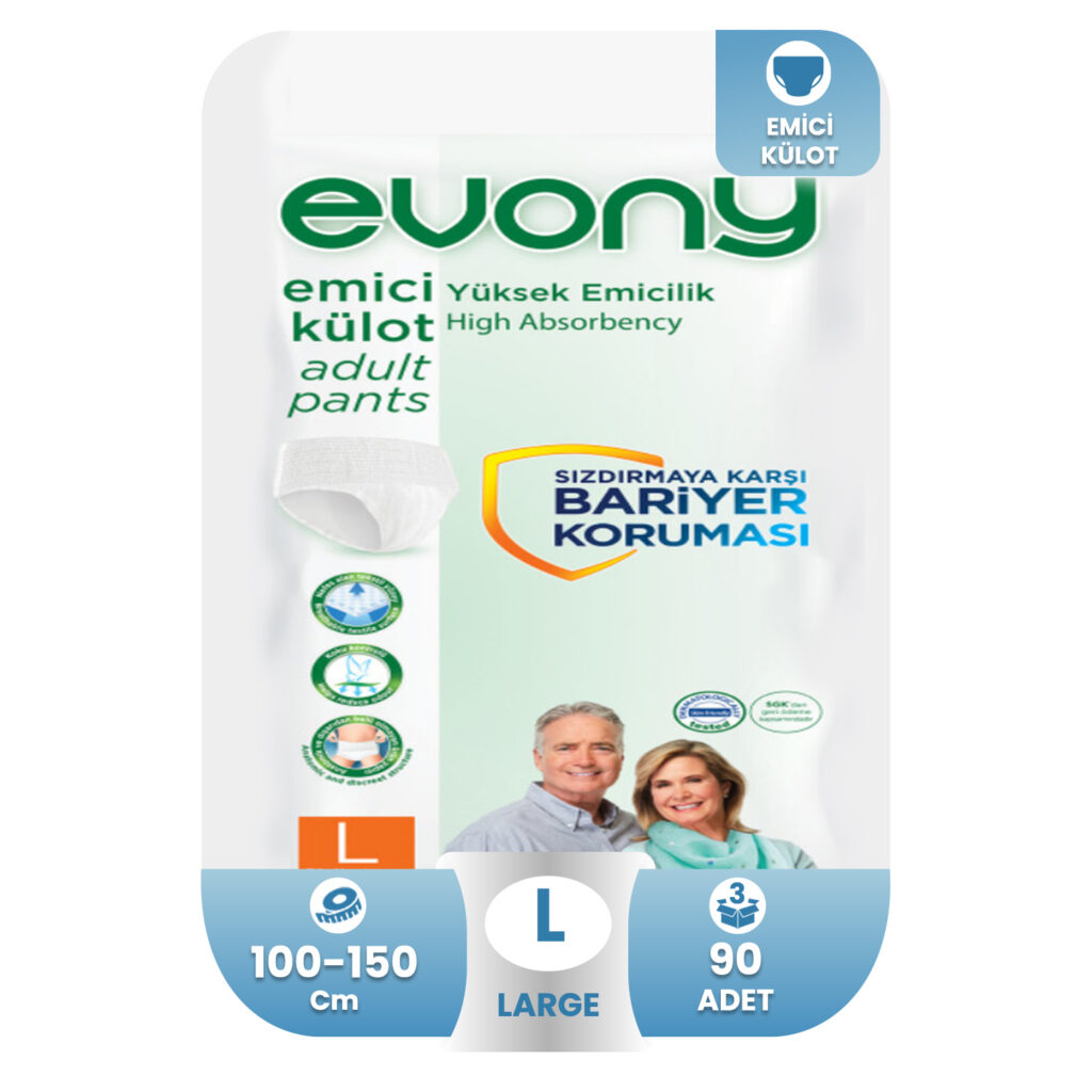 Joly Emici Külot L beden, 100-150 cm bel ölçüsüne uygun olup, günlük hayatınızı kesintisiz ve özgüvenle sürdürmeniz için ideal bir çözümdür. 60 adet ekonomik paket seçeneğiyle uzun süreli kullanım avantajı sunar.