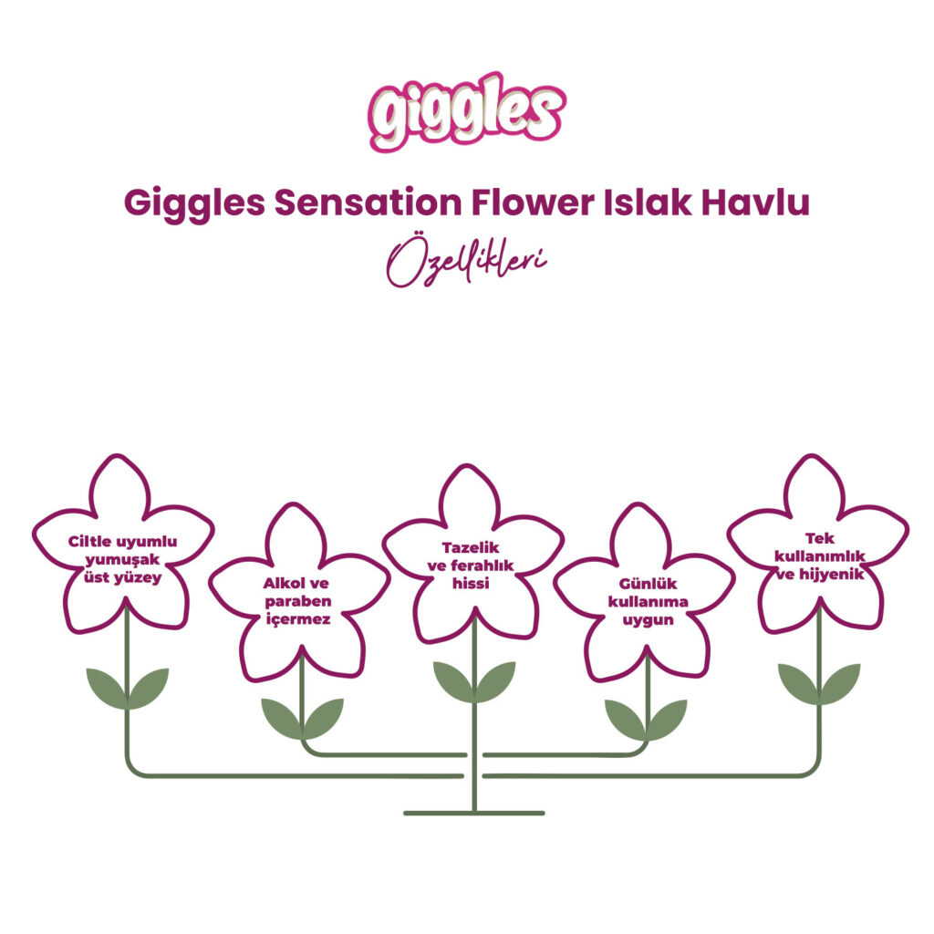 Giggles Klasik Islak Havlu, B5 vitamini, zengin E vitamini içeriği ve 5.5 pH dengesi ile cildinizi nazikçe temizlerken doğal bariyerini korur. Dermatolojik olarak test edilmiş özel formülü sayesinde hem yetişkinler hem de bebeklerin hassas ciltleri için güvenle kullanılabilir.