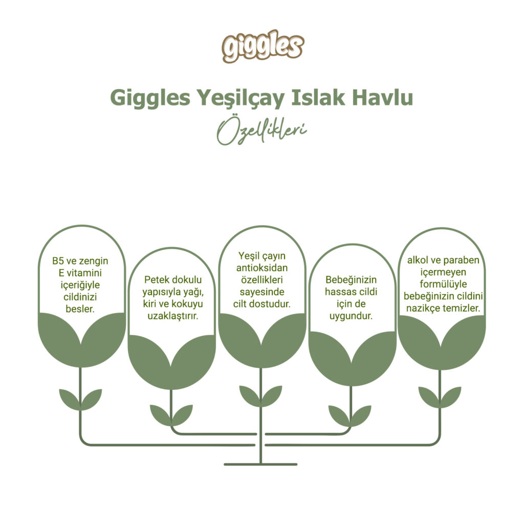 Giggles Klasik Islak Havlu, B5 vitamini, zengin E vitamini içeriği ve 5.5 pH dengesi ile cildinizi nazikçe temizlerken doğal bariyerini korur. Dermatolojik olarak test edilmiş özel formülü sayesinde hem yetişkinler hem de bebeklerin hassas ciltleri için güvenle kullanılabilir.