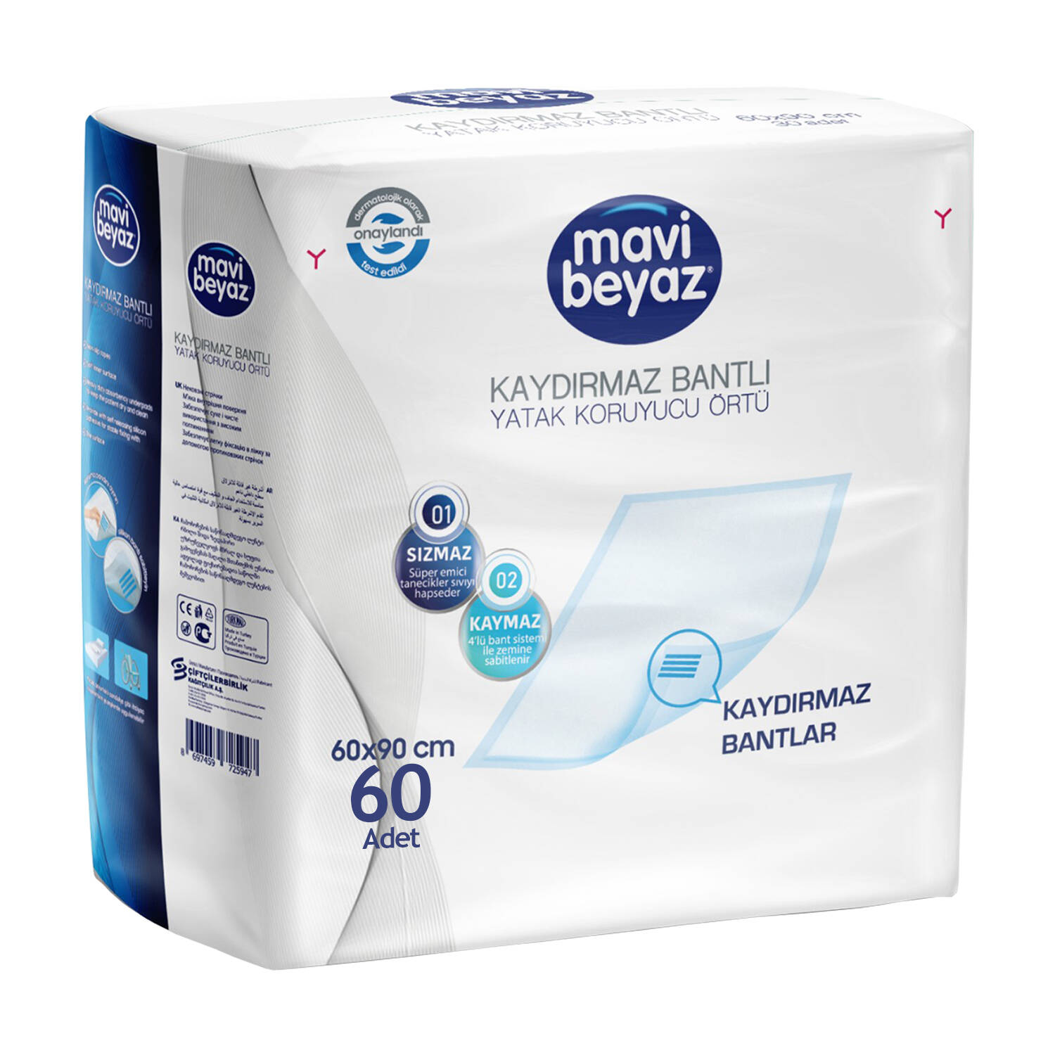 Mavi Beyaz Kaydırmaz Bantlı Yatak Koruyucu Örtü 60×90 Cm 60 Adet | Emici, Sızdırmaz ve Hijyenik